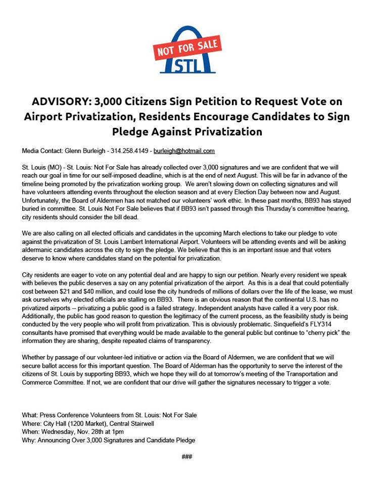 Volunteers from St. Louis: Not for Sale were joined by sponsors of BB93 this afternoon for a press conference at City Hall.